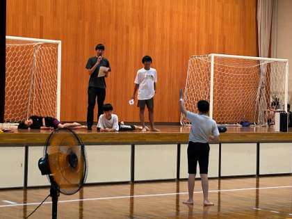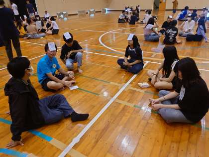 マリン体験を終えて、近くの体育館に移動して学年レクリエーションをしています。