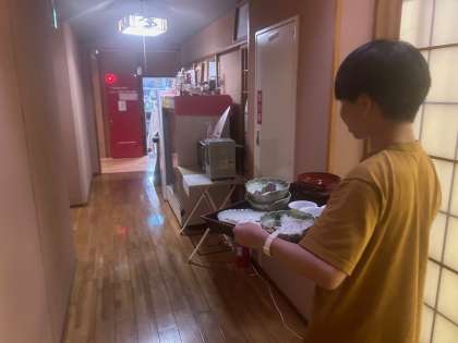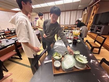 食器を宿の方に渡すとき、「ご馳走様でした」と自然と言える生徒たちです。