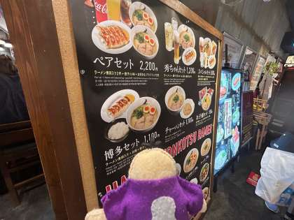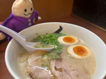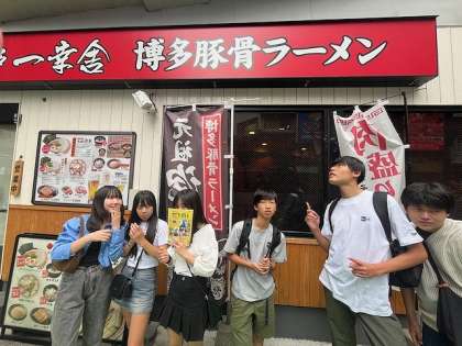 「昼食は博多ラーメンで」と考えている班も多いようです。アンショウオ君も豚骨味の博多ラーメンの美味にご満悦。