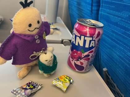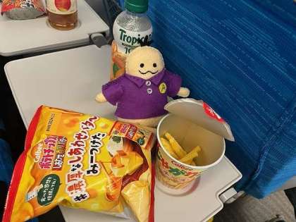 アンショウオ君もお菓子にジュースにご機嫌です。