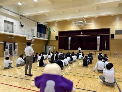 1時間目、体育館で解団式を行いました。校長先生、学年主任の先生、保健室の先生、修学旅行委員の代表生徒からのお話がありました。この旅行中、多少のトラブルはあったものの大きなケガや体調不良者もなく、全員が元気に無事帰って来られた素晴らしい修学旅行であったこと、旅行中に築いた学級や学年の絆と様々な経験を糧にこれからの行事や進路実現に向けてみんなで頑張っていくことを皆で確認しました。