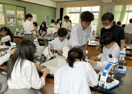 一人ずつ個人でプレパラートを作成し、顕微鏡でピントを合わせて細胞分裂を見ることができると、教室のあちこちで歓声が上がっていました。