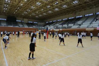 7月2日(火)島津アリーナで合同球技大会が開催され、5・6組の生徒が出場しました。昨年度までは、他の中学校との合同チームでの出場でしたが、安祥寺中学校として単独チームでの参加となりました。