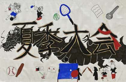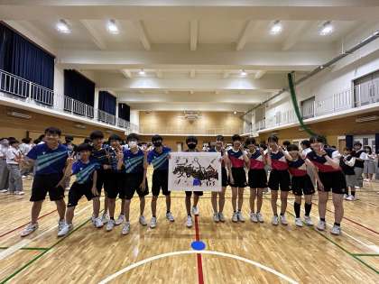壇上に上がる前に、美術・イラスト部が制作したイラストを持って、各部ごとに記念撮影を行いました。