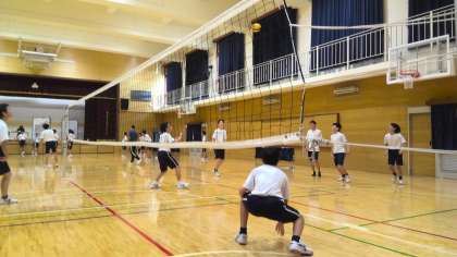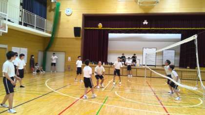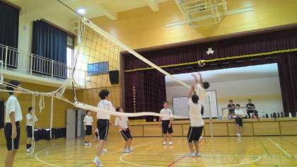 7月16日(火)1・2時間目に2年生の球技大会が行われました。男子は体育館でバレーボールをしました。クラスで団結して声を掛け合いながら、必死でボールをつなげる姿が印象的でした。