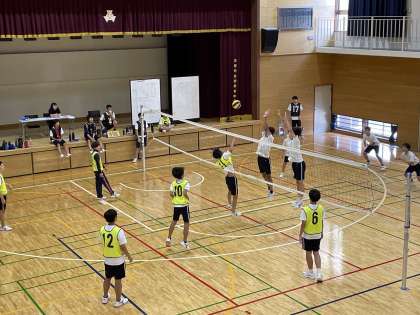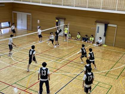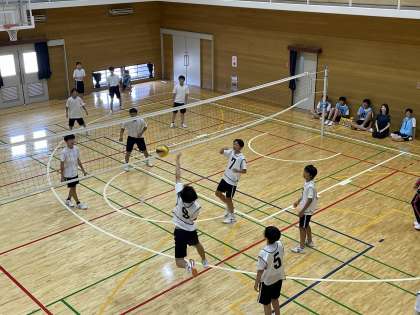 7月17日(水)1・2時間目に3年生の球技大会が行われました。男子は、体育館でバレーボールをしました。ラリーをつないで三段攻撃、レベルの高い熱戦が繰り広げられました。