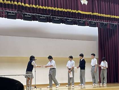 生徒会本部の代表生徒からは、1学期の振り返りと2学期に向けてのお話がありました。また、1学期に生徒会として取り組んだ「あいさつ週間」「着ベル週間」「徳署週間」の表彰も行われました。