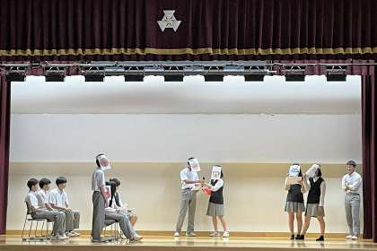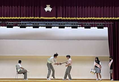 3年生の学年集会では、1学期の振り返りについて、各クラスが生徒たちが考えた劇の形で発表しました。