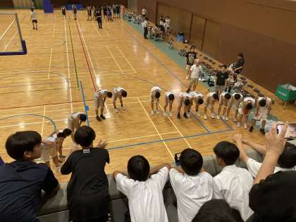 男子バスケットボール部は、7月21日(日)かたおかアリーナで行われた3回戦で向島東中学校と対戦しました。前日の接戦とは違い、自分たちの力を十分に発揮してゲームを進め勝利し、ベスト16進出です。