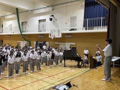 始業式の中で全校生徒で歌う校歌と安祥寺中学校記念応援ソングの「step by step」は、「2学期に行われるたくさんの行事をみんなで頑張って取り組んでいこう」という思いがを込められていました。