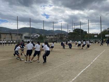 2年生では、学年種目「縄引き」の練習を行いました。早くも「勝ちたい」という思いで盛り上がり、クラスの団結力が発揮されるのが楽しみです。