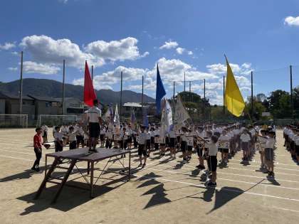 開会式での選手宣誓と準備運動の確認をしました。