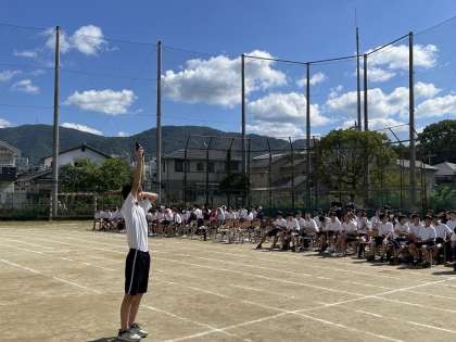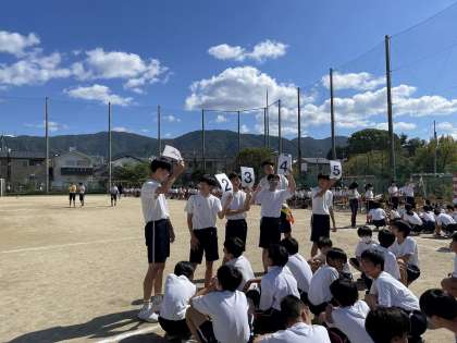 競技の招集は生徒の手で行います。(写真左)