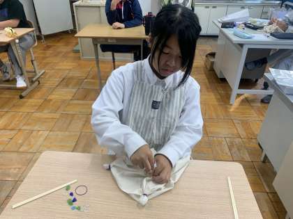 5・6組は、5月に種を植えて育てた藍を使って、9月に藍染めをしました。10月22日(月)今回で2回目になる藍染めでは、トートバッグを染めました。