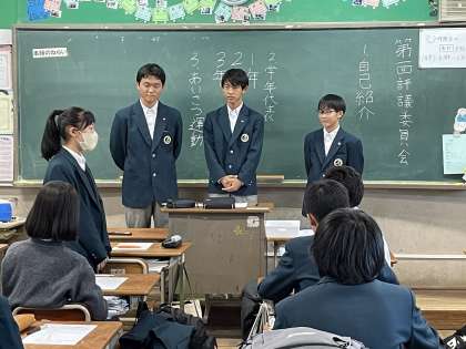 認証式の後、後期の第1回評議・専門委員会が行われました。新しい生徒会本部の委員長も各クラスから選ばれた学級役員も、初めての委員会に緊張しながらも一生懸命取り組む様子が見られました。