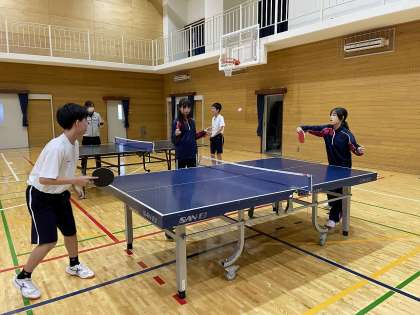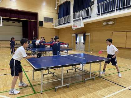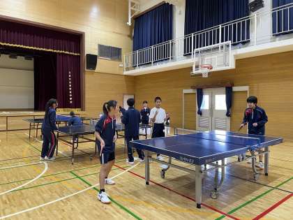 1年生の体育の授業では、卓球をしています。楽しくゲームに取り組んでいる姿が印象的でした。