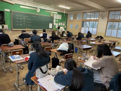 明日から定期テストが始まります。先週11月14日(木)から始まったテスト前の放課後学習会。自主参加に関わらず多くの生徒が参加して意欲的に熱心に学習に取り組んでいます。今日はテスト前日とあって、いつも以上に学習に熱が入っていました。
