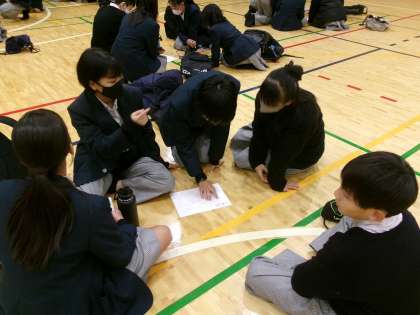 体育館に集合して、実行委員の生徒から本日の目的と説明を受けた後、各班ごとに校区に徒歩で出発します。