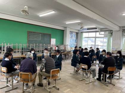 1月27日(月)午後、中学生と地域の人が語らう「ふれあいトーク安祥寺」を開催しました。今回は、5〜6名の中学2年生のグループに大人の方1〜2名が入り、色々なテーマについて話をしました。