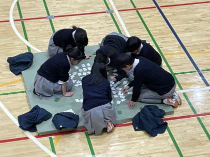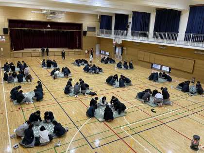 2年生では、年末から国語の授業で百人一首に取り組んでいましたが、今日は体育館で畳を敷いて「百人一首大会」を学年で行いました。