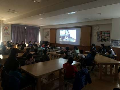 交流会は、この日のために準備や練習を積み重ねてきた5・6組の生徒が中心となって進行しました。小学生が安心して安祥寺中学校に入学してもらうために作成した「学校紹介クイズ」もありました。