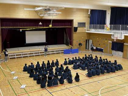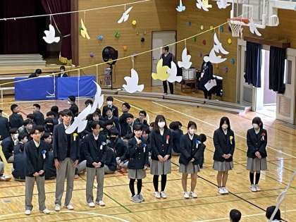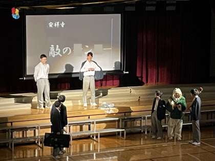 生徒会本部によるオープニングは、映像と寸劇で、3年生へのメッセージと「3年生を送る会を全校生徒全員で盛り上げて素晴らしいものにしよう」という強い思いが伝えられました。