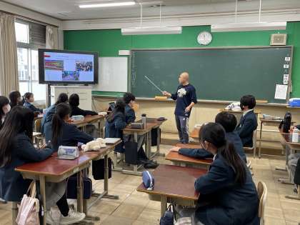 先日、卒業生を送り出した3年生の先生方が、本日の4時間目に、1年生のクラスでゲストティーチャーとして授業を行いました。
