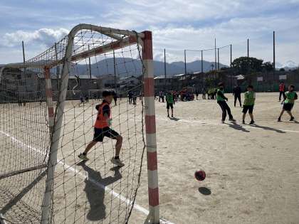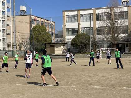 本日行われた球技大会、1年生の男子は、グランドでハンドボールをしました。午前中は晴天にも恵まれ絶好のスポーツ日和の中、懸命に1つのボールを追いかけて、仲間との絆を深めました。