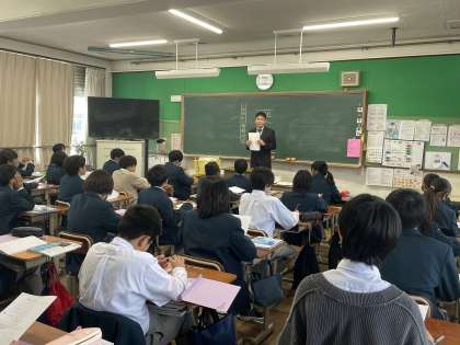 3年生の英語の授業では、学習の進め方や副読本の使い方等オリエンテーションを行いました。(写真下)