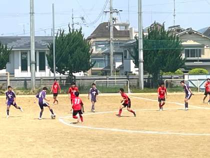 サッカー部は、4月26日(土)京都教育大学附属桃山中学校で行われた1回戦で、洛北中学校と対戦しました。序盤からゲームを試合し7−0の完勝で2回戦に駒を進めました。