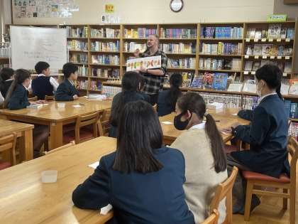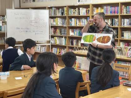 1回目の今日、5月の企画は、ALTの先生による英語の絵本の読み聞かせ会&トーク会がイングリッシュシャワーとのコラボ企画で実施されました。絵本は、おなじみの「はらぺこあおむし(The Very Hungry Caterpillar)」でした。トーク会は、食べ物に関するテーマで、英語で行われました。