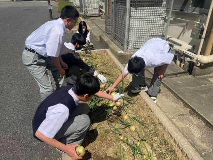 5・6組は、冬に植えた玉ねぎを収穫して、調理実習を行いました。