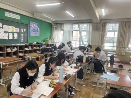 明日5月16日(金)は全学年単元テストが実施されます。国・社・数・理・英の5教科で、テスト時間は各30分です。各学年とも放課後学習会が行われ、自由参加ながらも多くの生徒が参加し、熱心に学習に取り組みました。
