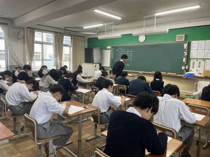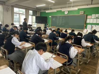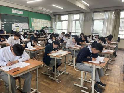 5月16日(金)全学年で単元テストが行われました。今年度初めてのテストに1〜3年生のどの学年の生徒も真剣に取り組みました。