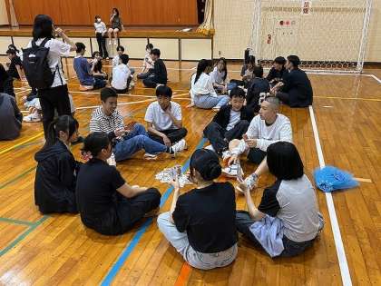 マリン体験を終えて、近くの体育館に移動して学年レクリエーションをしています。