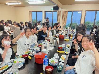 今日は、マリン体験などを通して疲れた様子の生徒たちも、ご飯はとても元気に食べています。