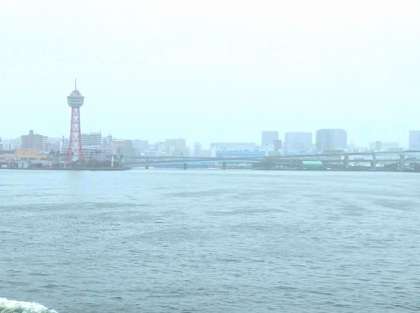 フェリーは、まもなく博多港に到着します。博多ポートタワーが見えてきました。