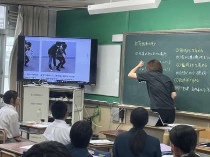 2年生の保健の授業では、「犯罪被害の防止」について学習しました。最後に、護身術を実際にやってみました。