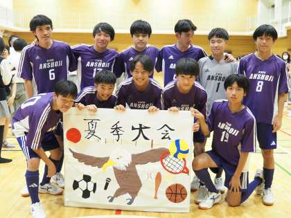 壇上に上がる前に、美術・イラスト部が制作したイラストを持って、各部ごとに記念撮影を行いました。