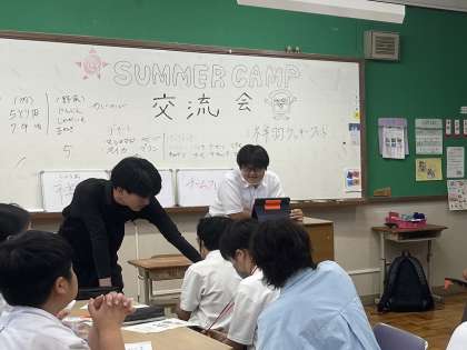 8月21日(木)22日(金)にサマーキャンプに行きます。当日同じグループで活動する音羽中学校との事前交流会をお世話になる大学生のボランティアの方にも来ていただいて安祥寺中学校で行いました。