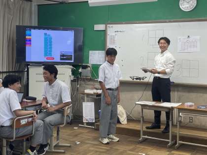 京都すばる高校・情報科学科の体験授業では、プログラミングでドローンを飛ばす体験をしました。