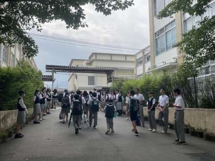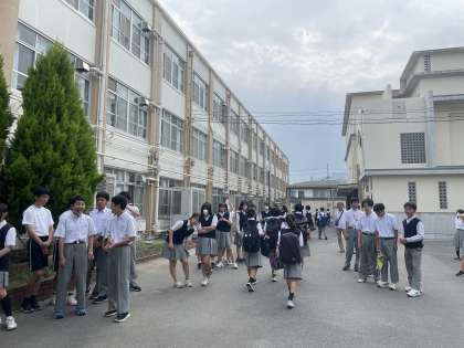 7月1日(火)の1年生、3日(木)の2年生に続き、今日は3年生全員が朝から校門に立ってあいさつ運動を行いました。さすが最高学年の3年生。蒸し暑さを吹き飛ばす元気なあいさつで1日が始まりました。1学期も残すところあと8日になりました。猛暑が続きますが、元気に夏休みを迎えましょう。