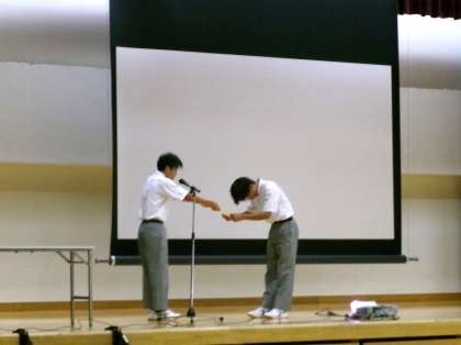 生徒会からも、生活委員会主催「熱いあいさつ運動」の取組の優秀クラスが表彰されました。