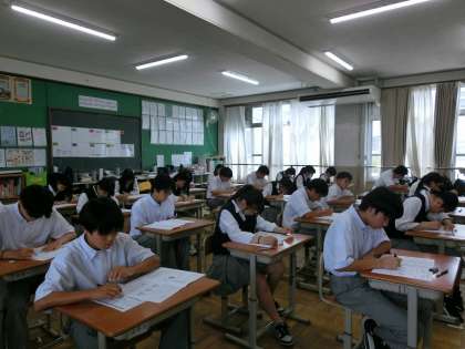 全学年で、3〜4教科の夏休み明けテストを実施しました。夏休みの学習の成果を試すテストに、生徒たちは真剣に取り組んでいました。