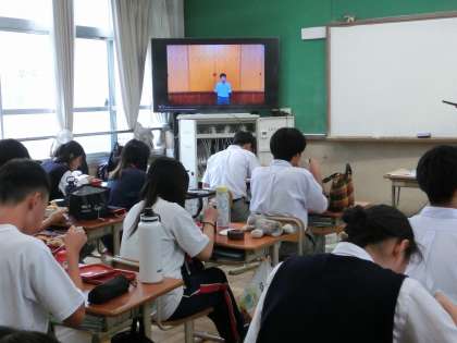昼食時に体育委員会で作成した動画を視聴し、体育委員長や各色の応援団長からの熱いメッセージを聞きました。明日からは、エール交換や各色の応援歌、応援の方法についての動画が流れる予定です。
