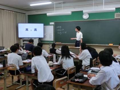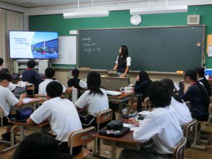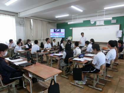 2・3年生の英語の授業では、クラスを半分に分けてそれぞれの学年が1つの教室に入り、合同でプレゼンテーションを行いました。