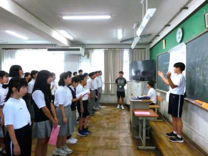 1年生は、合唱コンクールに向けて、クラスの選択曲の練習にも力を入れて取り組んでいます。全学年ともクラス毎に、音楽室、体育館、多目的室と、ピアノのある部屋が順番に割り当てられます。それ以外の日は、教室や廊下でパート練習をしたり全体で合わせて歌ったりと工夫をして練習します。
