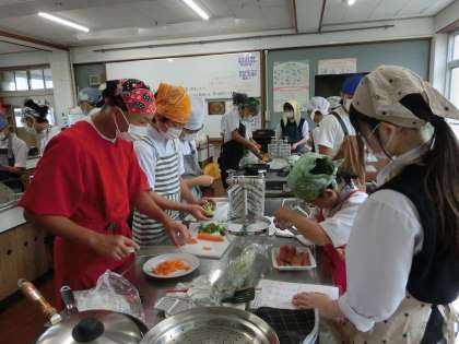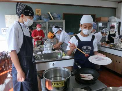 さけのムニエルと蒸し野菜サラダ 2 〜2年生家庭科 調理実習〜