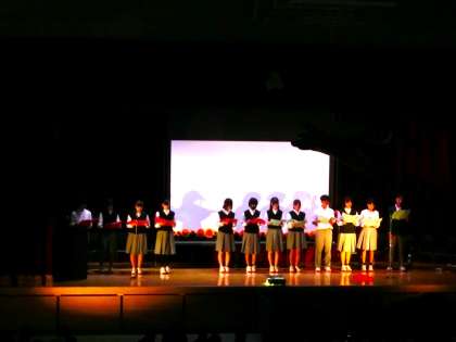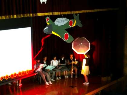 登場人物の複雑な心情をうまく表現した朗読に思わず涙がこぼれそうになりました。1・2年生の生徒、教職員、保護者の皆様、会場にいたすべての人が平和について改めて考えさせられた見事な発表(劇)でした。