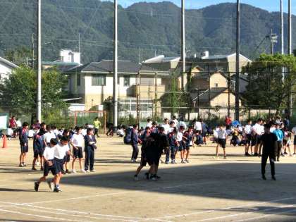 10月16日(木)に実施される体育大会に向けて、本日7時間目、初めて3学年揃って縦割りの色別練習を行いました。「大縄跳び」「3人4脚リレー」「玉入れ」の色別種目について、ルールやメンバーの確認、作戦会議をして実際に競技をやってみました。